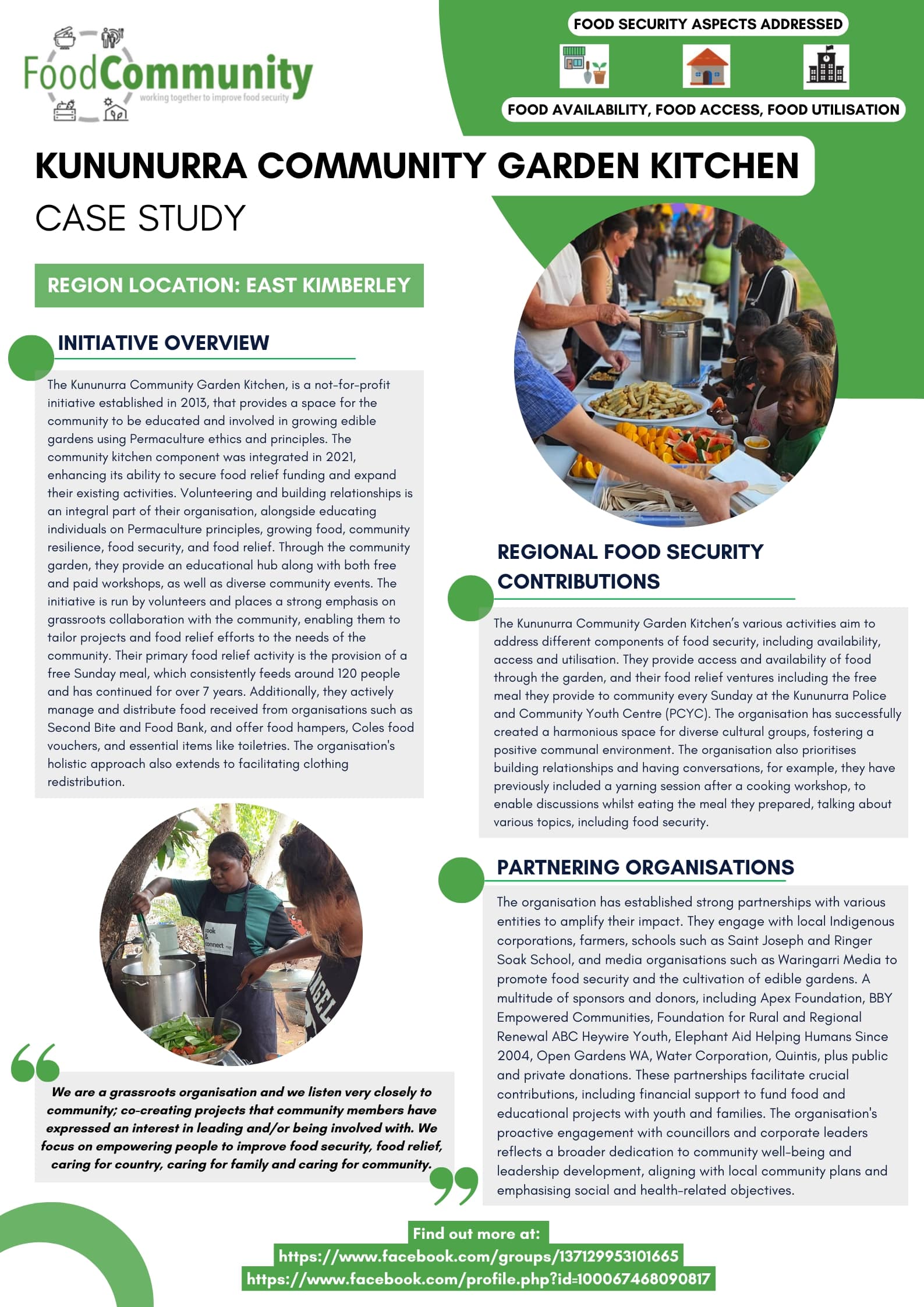 The Kununurra Community Garden Kitchen is a not-for-profit initiative that provides a space for the community to be educated and involved in growing edible gardens using permaculture ethics and principles.